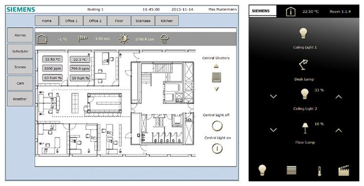 - Die Funktionen sind per Smartphone mit dem IP Control Center von Siemens bedienbar
