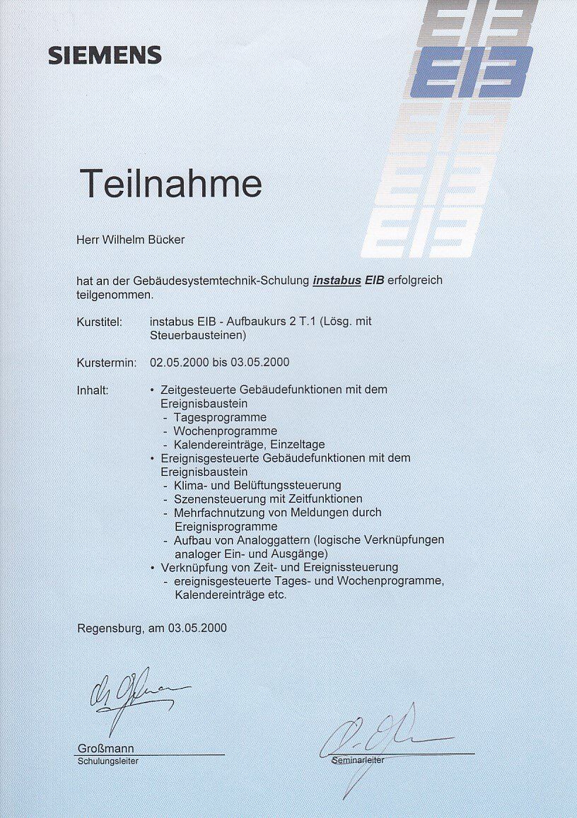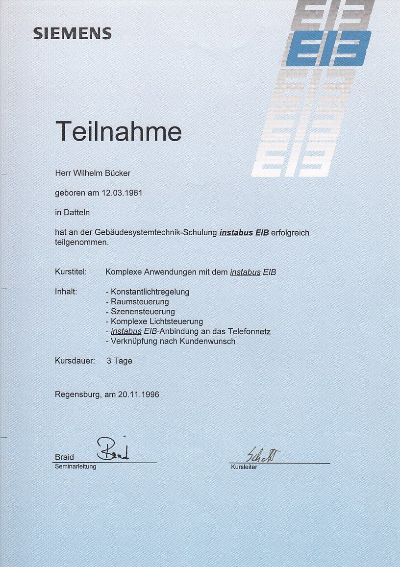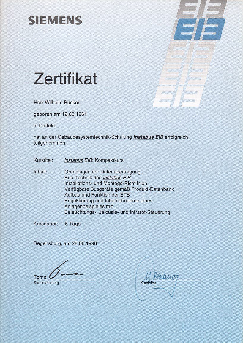1996 Kompaktkurs und Zertifizierung KNX, Siemens Regensburg
